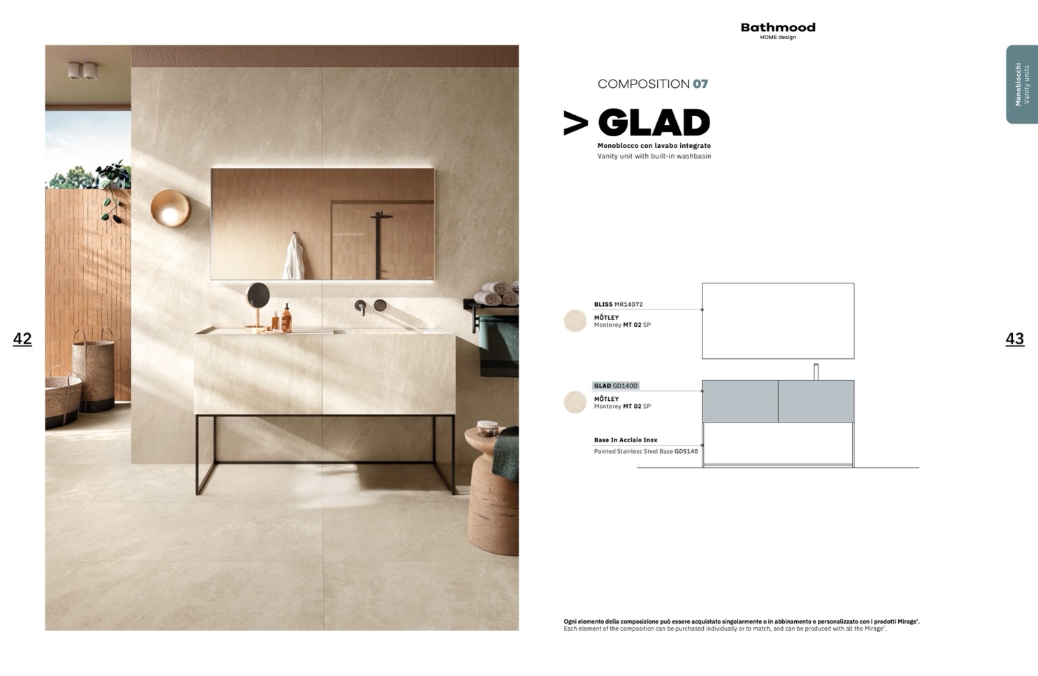 Ogni elemento della composizione può essere acquistato singolarmente o in abbinamento e personalizzato con i prodotti Mirage