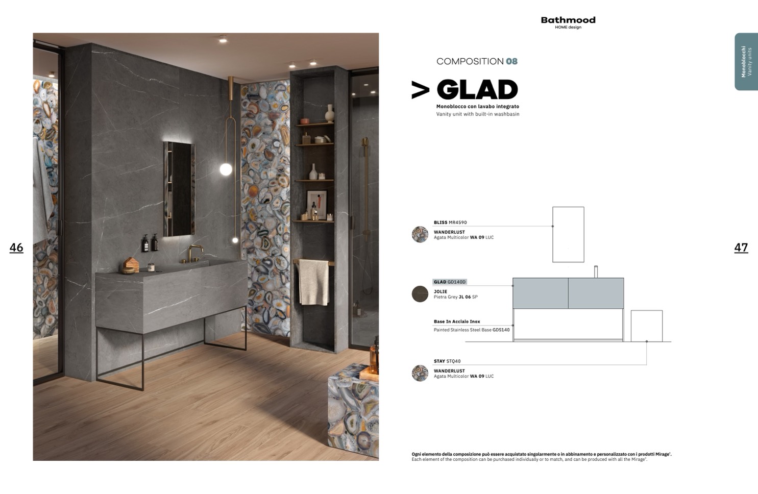 Ogni elemento della composizione può essere acquistato singolarmente o in abbinamento e personalizzato con i prodotti Mirage