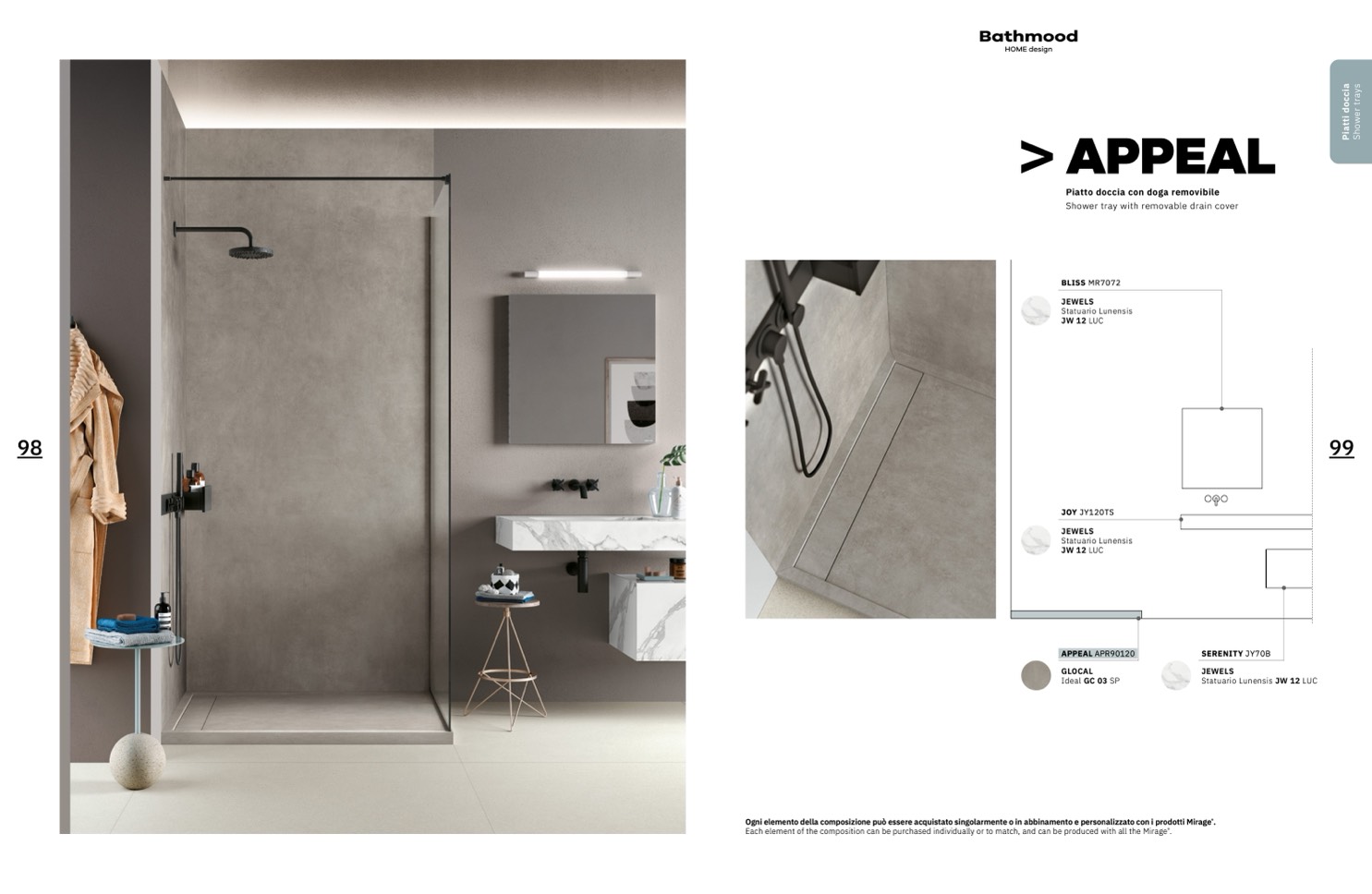 Ogni elemento della composizione può essere acquistato singolarmente o in abbinamento e personalizzato con i prodotti Mirage