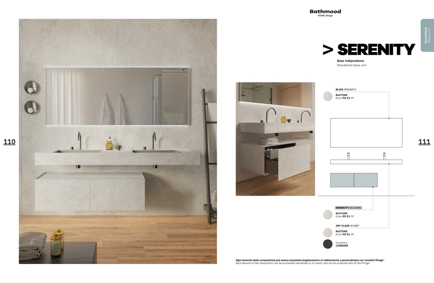 Ogni elemento della composizione può essere acquistato singolarmente o in abbinamento e personalizzato con i prodotti Mirage