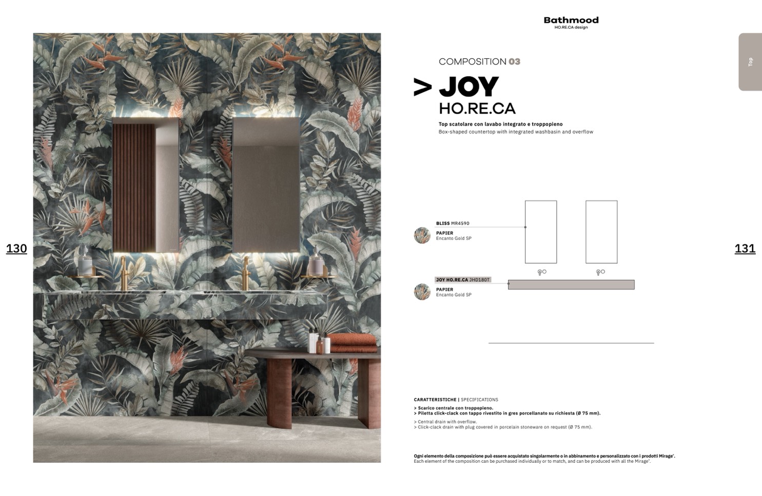 Ogni elemento della composizione può essere acquistato singolarmente o in abbinamento e personalizzato con i prodotti Mirage