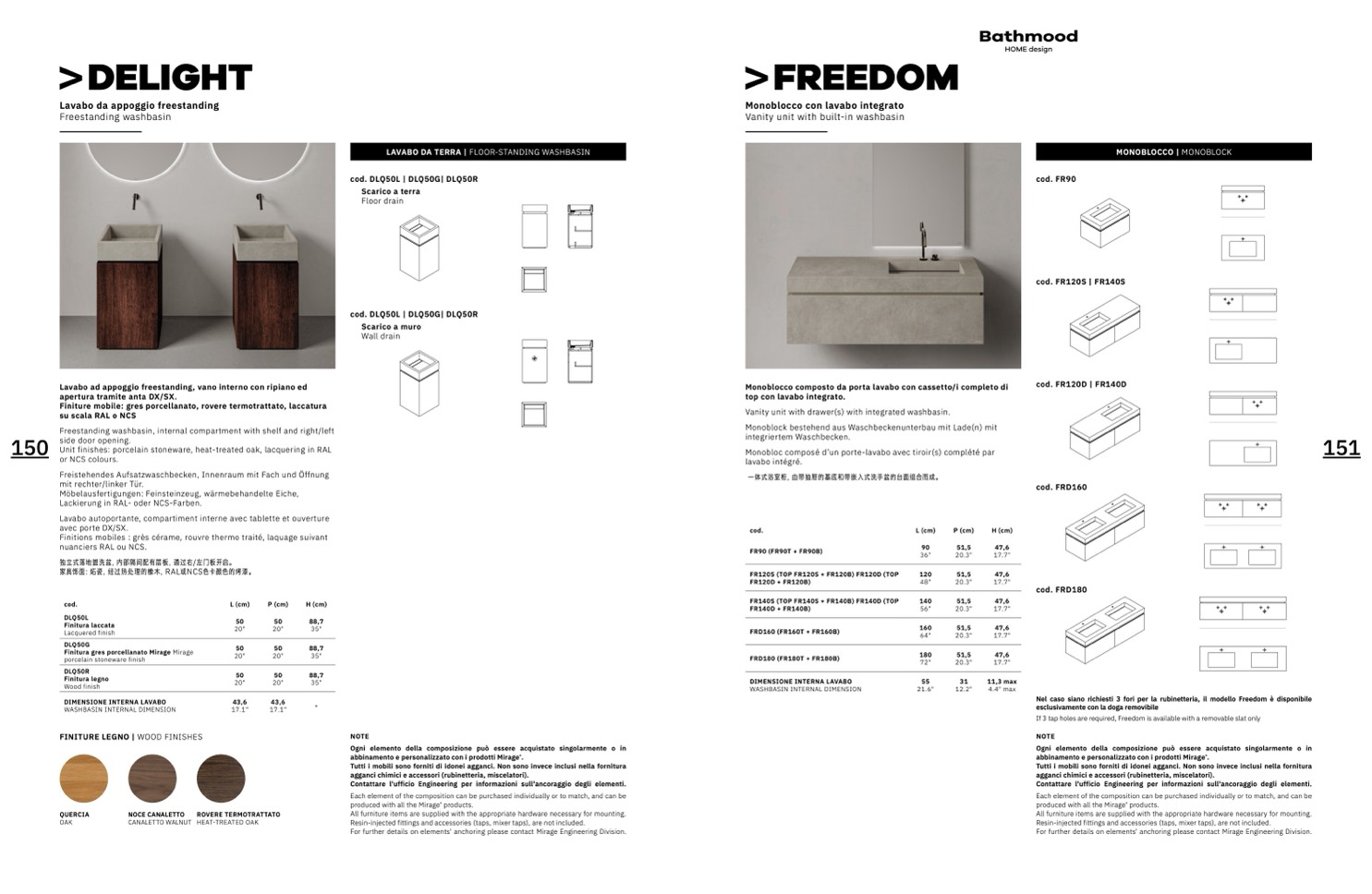 Unit finishes: porcelain stoneware, heat-treated oak, lacquering in RAL