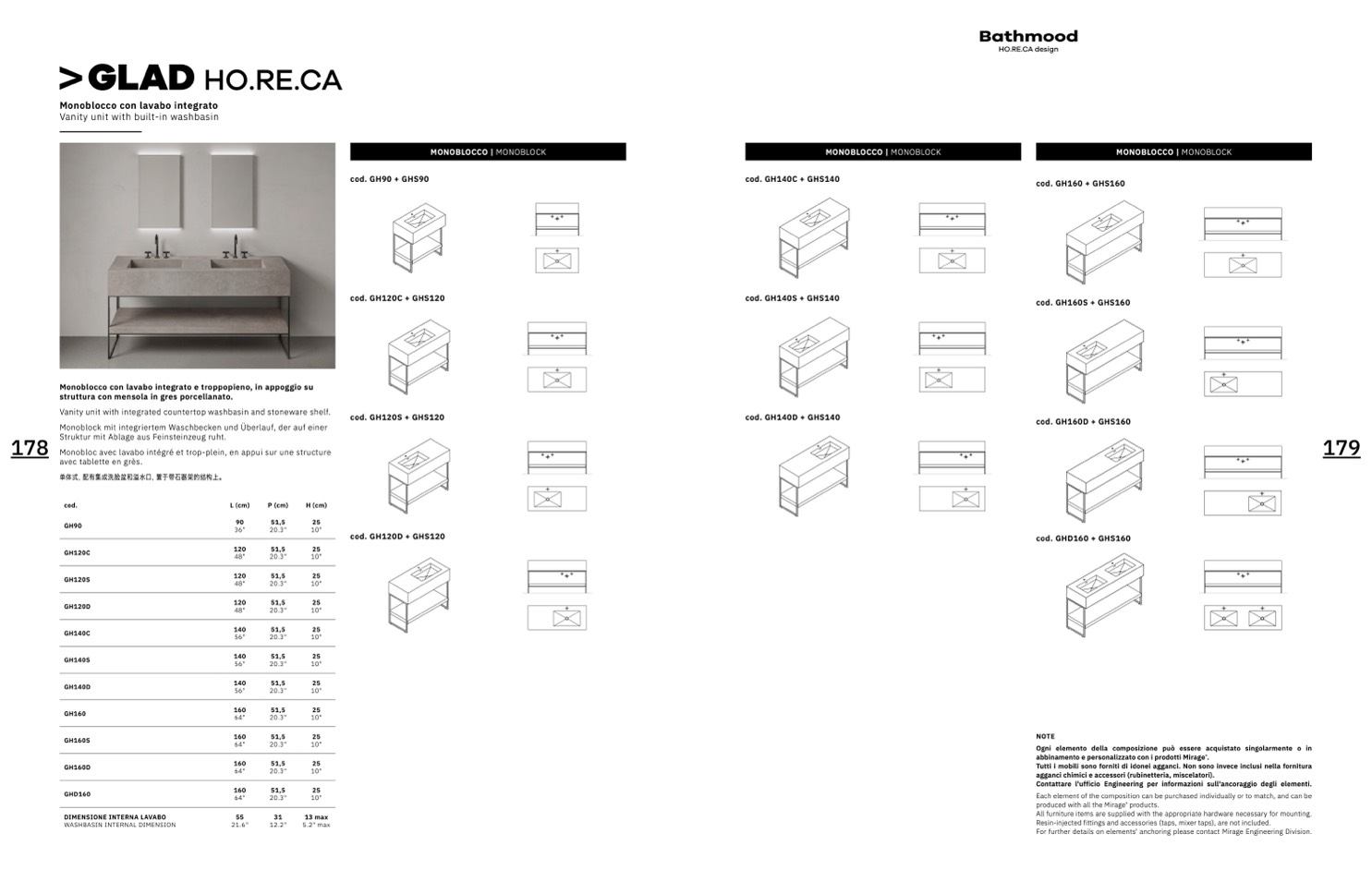 Monoblocco con lavabo integrato e troppopieno, in appoggio su