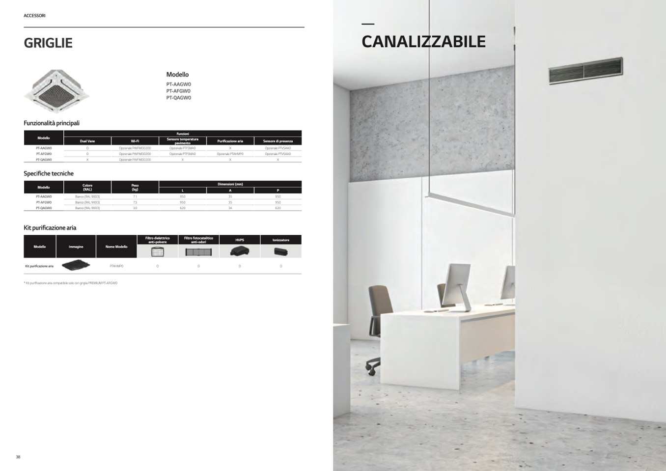 * Kit purificazione aria compatibile solo con griglia PREMIUM PT-AFGW0