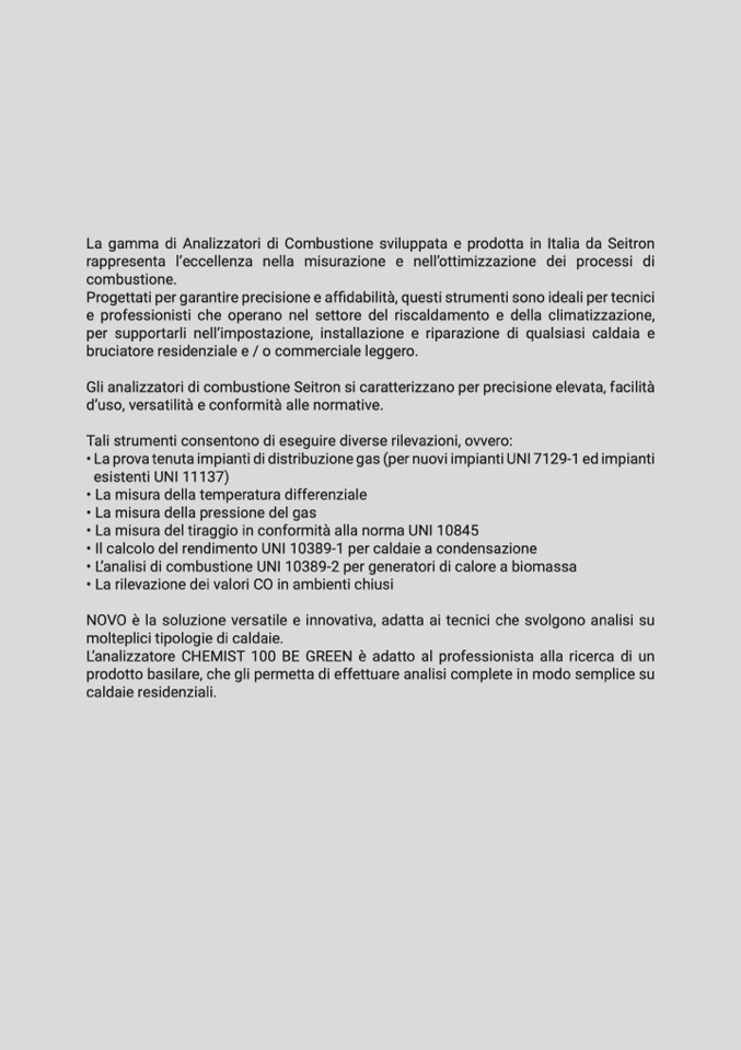 La gamma di Analizzatori di Combustione sviluppata e prodotta in Italia da Seitron