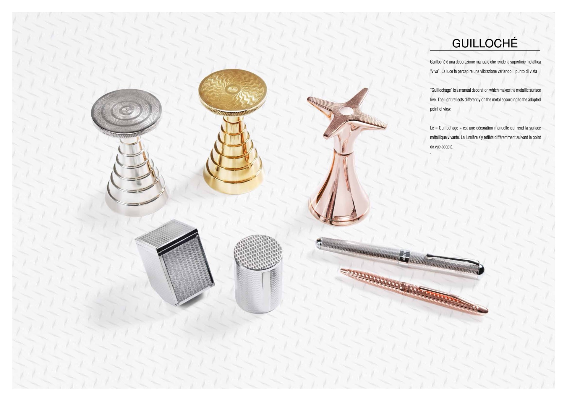 Guilloché è una decorazione manuale che rende la superficie metallica
