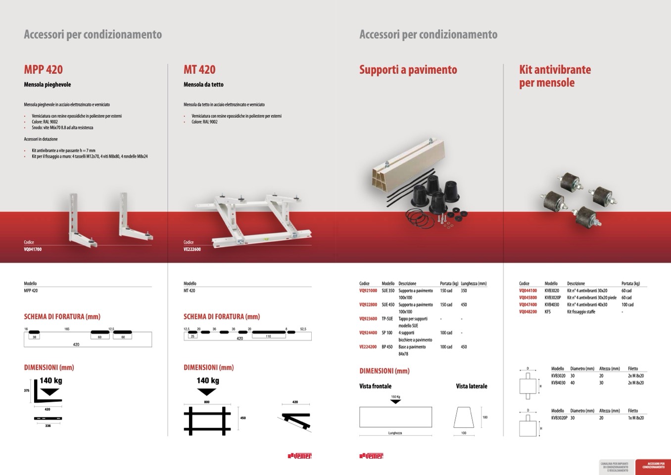 • Kit per il fissaggio a muro: 4 tasselli M12x70, 4 viti M8x80, 4 rondelle M8x24