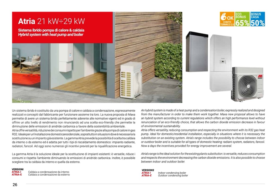 sostituzione su un impianto già esistente. La gamma Atria prevede la possibilità di scelta tra caldaia