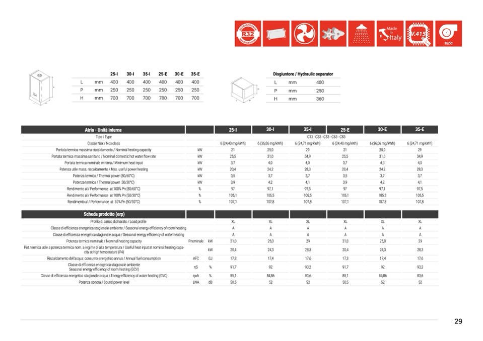 Potenza utile mass. riscaldamento / Max. useful power heating