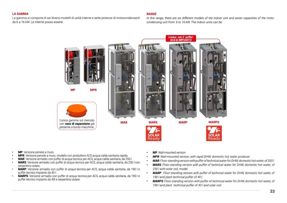 • MARP: Floor-standing version with puffer of technical water for DHW, domestic hot water, of