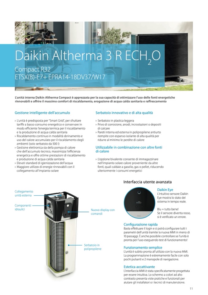L'unità interna Daikin Altherma Compact è apprezzata per la sua capacità di ottimizzare l'uso delle fonti energetiche