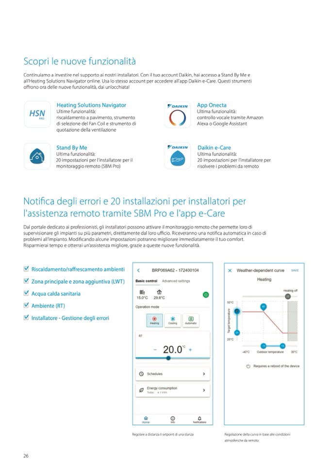 all’Heating Solutions Navigator online. Usa lo stesso account per accedere all'app Daikin e-Care. Questi strumenti