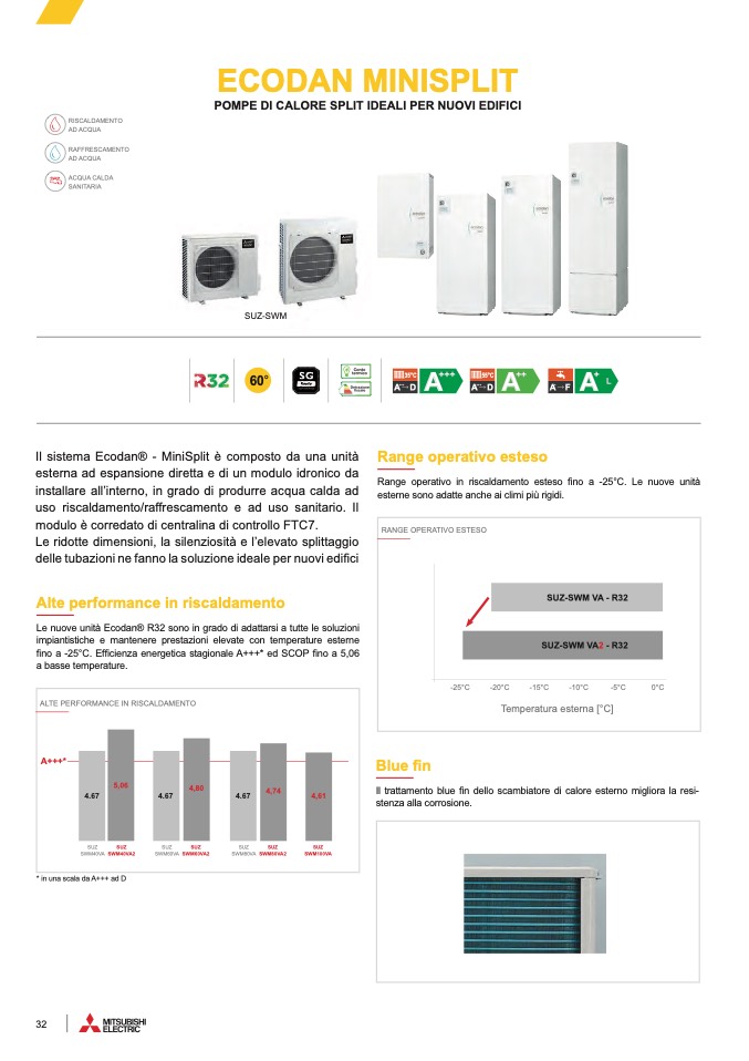 Le nuove unità Ecodan® R32 sono in grado di adattarsi a tutte le soluzion