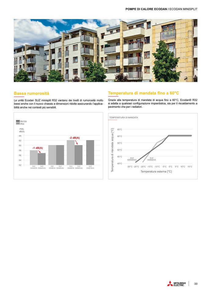 Le unità Ecodan SUZ minisplit R32 vantano dei livelli di rumorosità molt