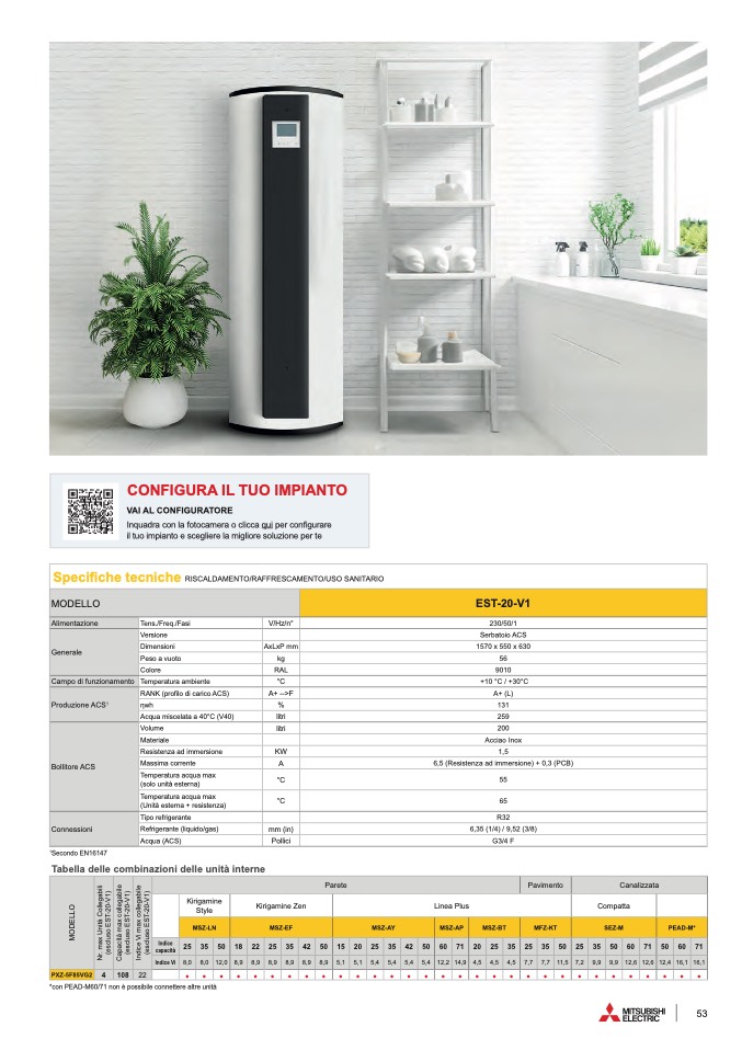 Tabella delle combinazioni delle unità intern