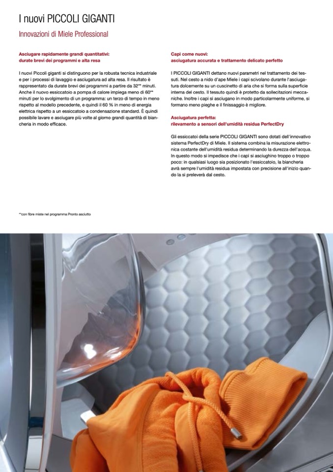 niche. Inoltre i capi si asciugano in modo particolarmente uniforme, si