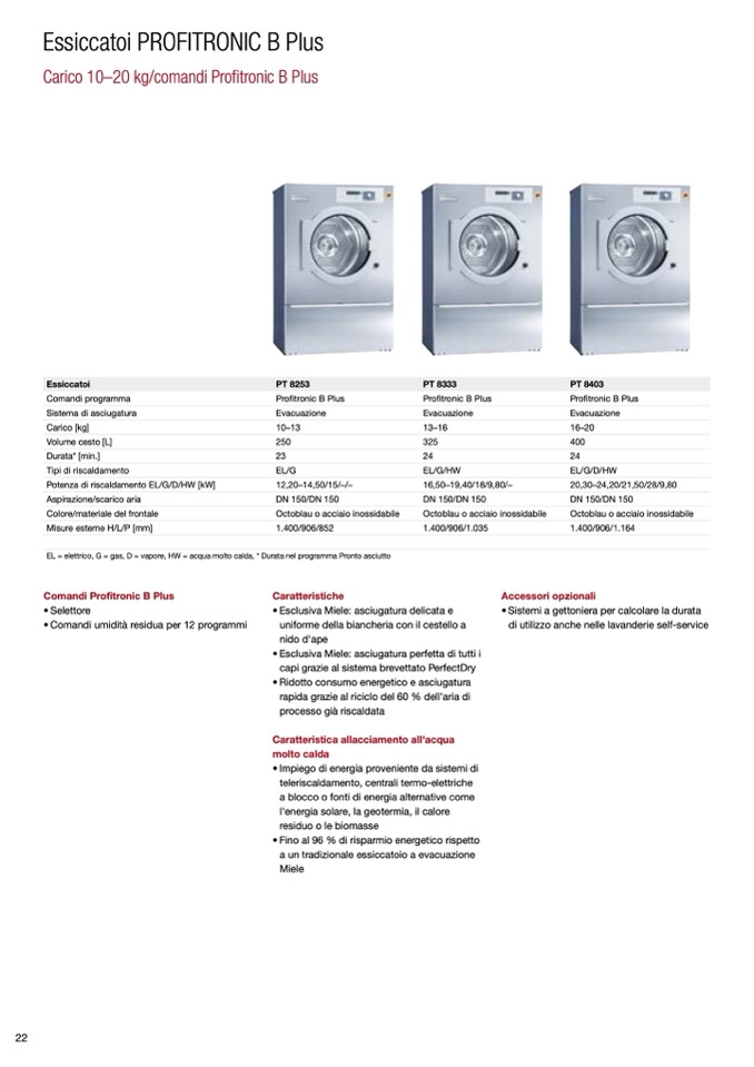 EL = elettrico, G = gas, D = vapore, HW = acqua molto calda, * Durata nel programma Pronto asciutto