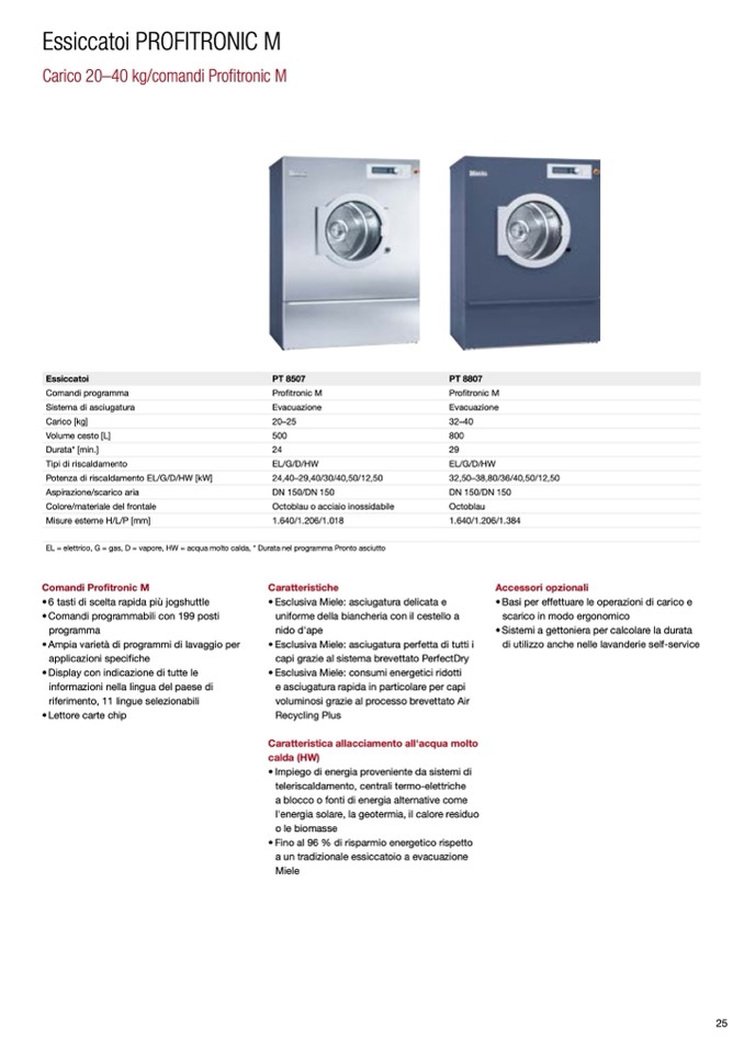 EL = elettrico, G = gas, D = vapore, HW = acqua molto calda, * Durata nel programma Pronto asciutto