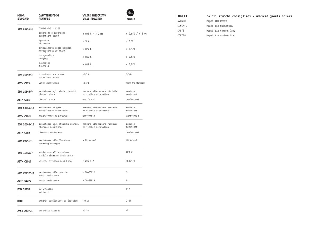 colori stucchi consigliati / adviced grouts colors