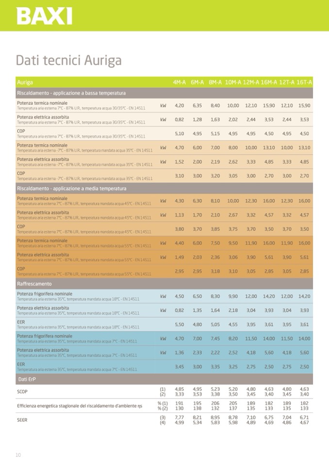 Temperatura aria esterna 7°C – 87% U.R., temperatura mandata acqua 55°C - EN 14511