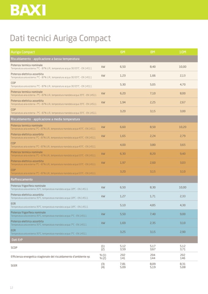 Temperatura aria esterna 7°C – 87% U.R., temperatura mandata acqua 55°C - EN 14511
