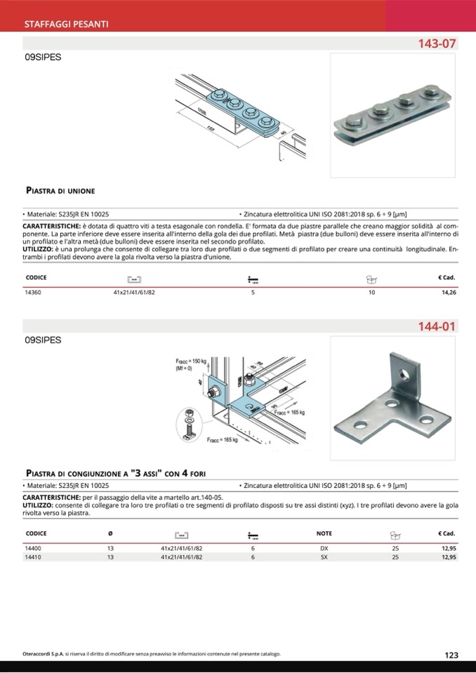 PIASTRA DI CONGIUNZIONE A "3 ASSI" CON 4 FORI