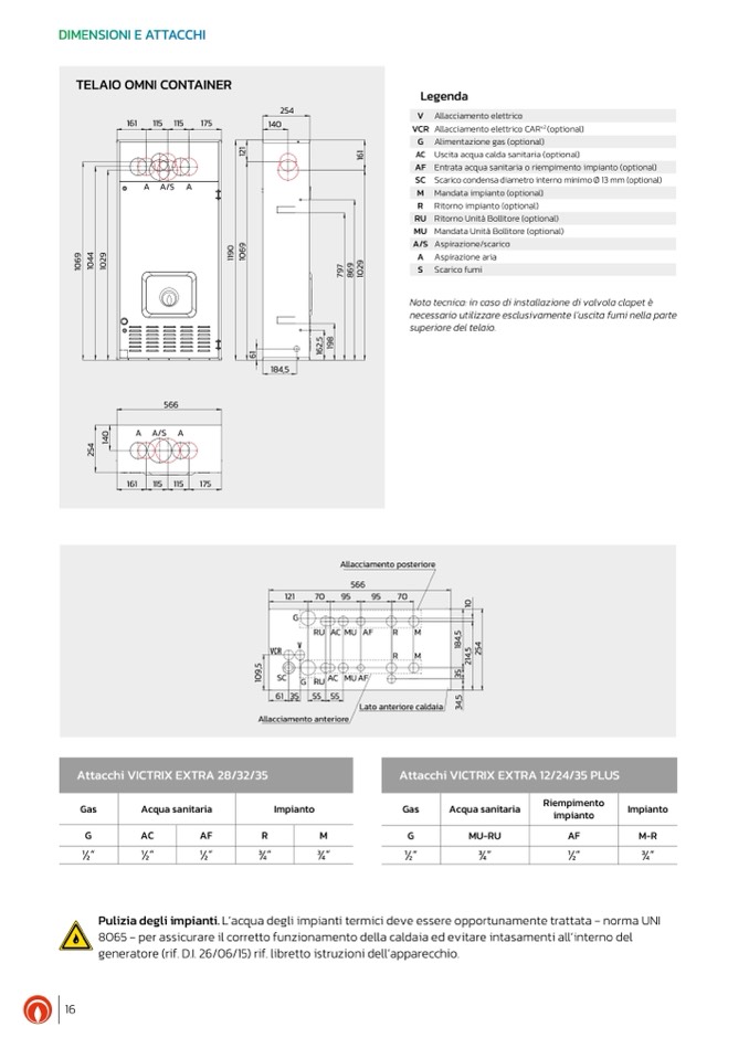 Scarico condensa diametro interno minimo Ø 13 mm (optional)