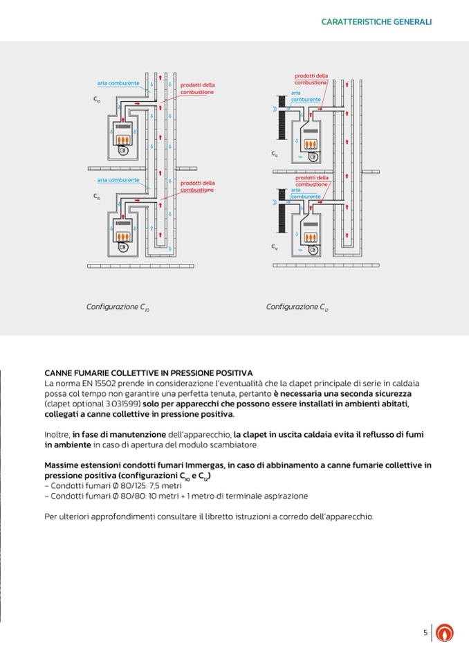 Inoltre, in fase di manutenzione dell’apparecchio, la clapet in uscita caldaia evita il reflusso di fumi
