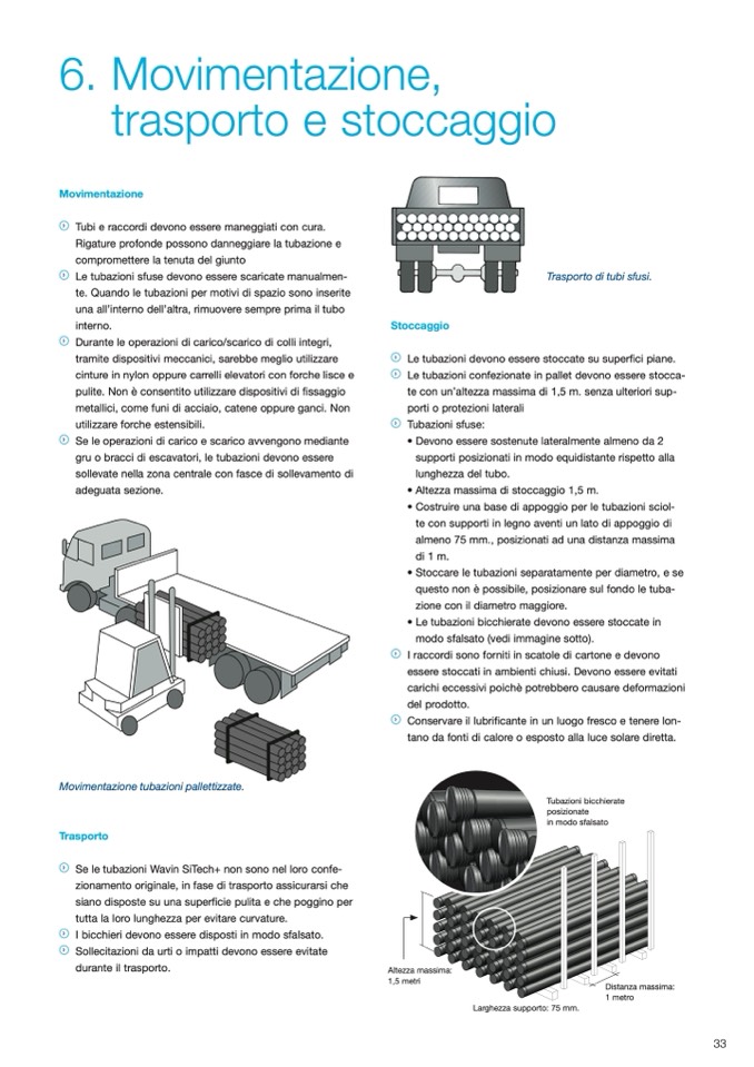 Le tubazioni confezionate in pallet devono essere stocca-