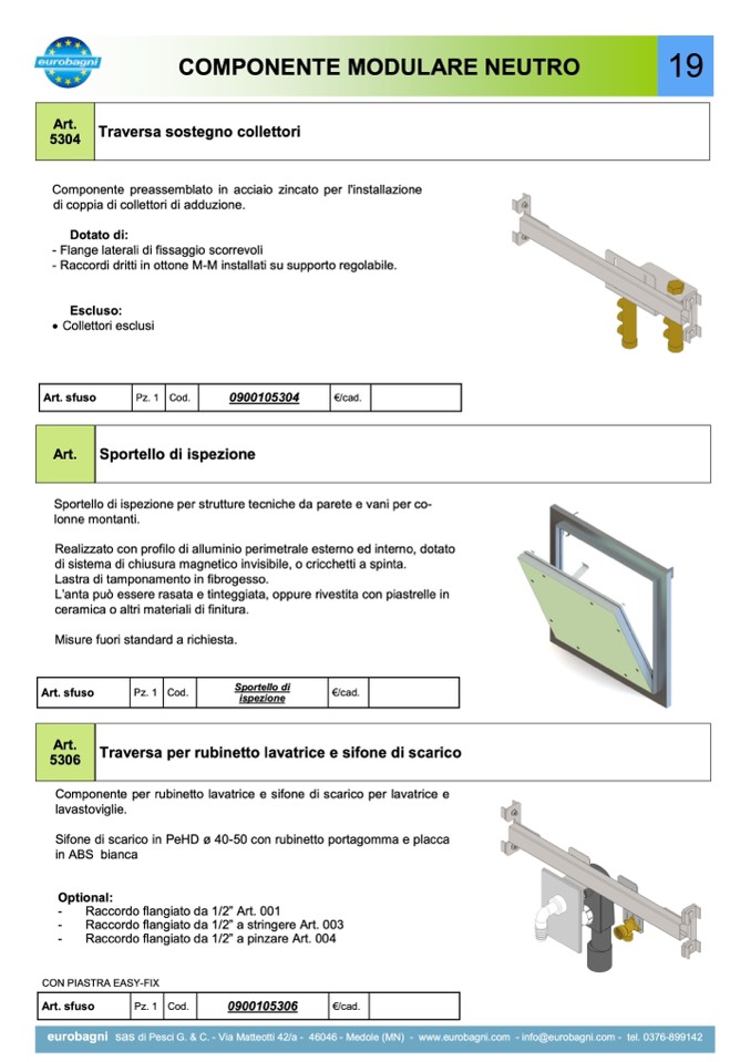 19e1u9robagni sas di Pesci G. & C. - Via Matteotti 42/a - 46046 - Medole (MN) - www.eurobagni.com - info@eurobagni.com - tel. 0376-899142