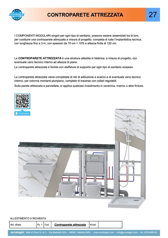 La controparete attrezzata viene completata di reti di adduzione e scarico e di eventuale vano tecnico