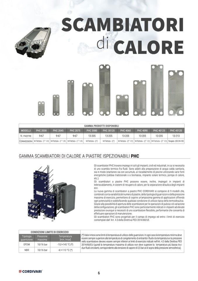 La nuova gamma di scambiatori a piastre PHC CORDIVARI si compone di 9 modelli che,