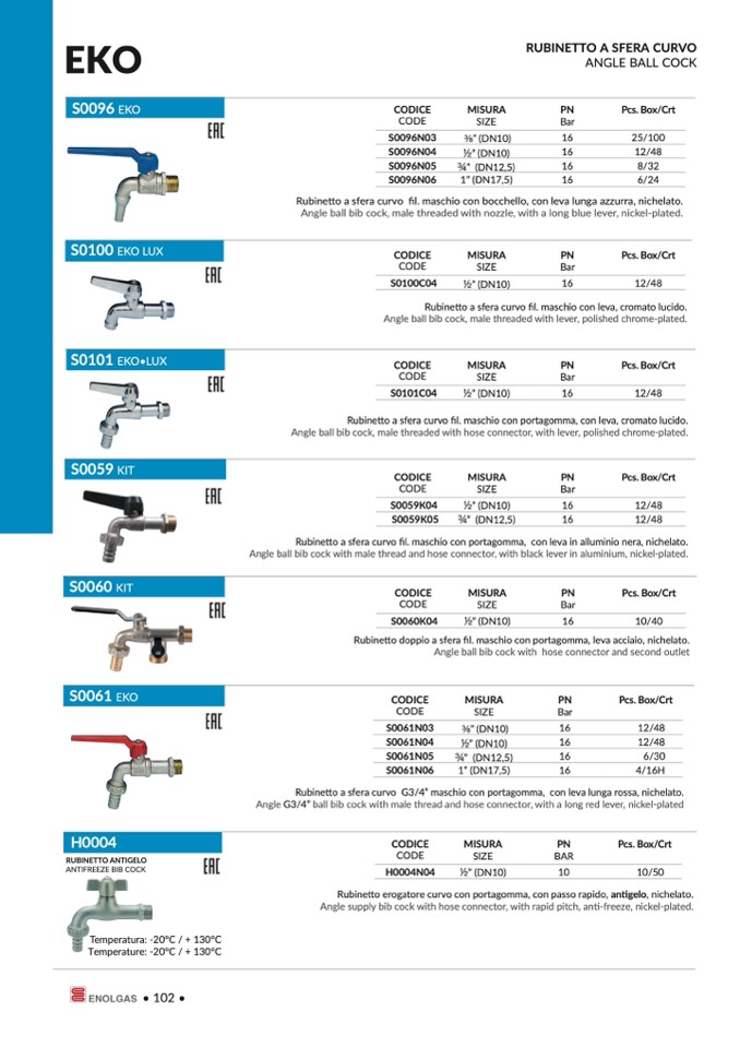 Temperatura: -20°C / + 130°C