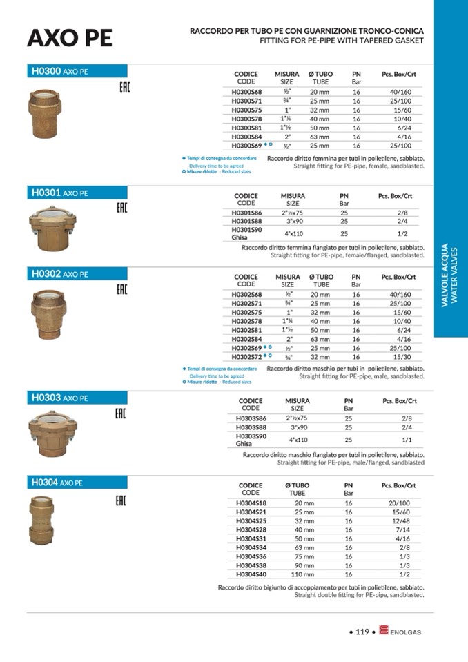 Raccordo diritto bigiunto di accoppiamento per tubi in polietilene, sabbiato.