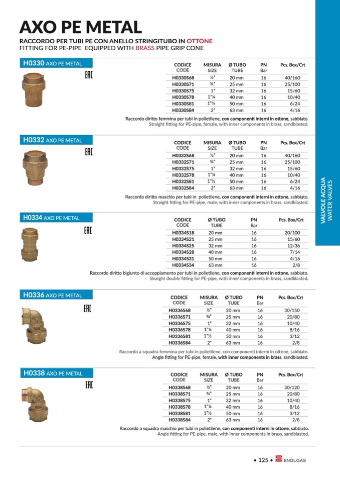 Raccordo diritto bigiunto di accoppiamento per tubi in polietilene, con componenti interni in o
