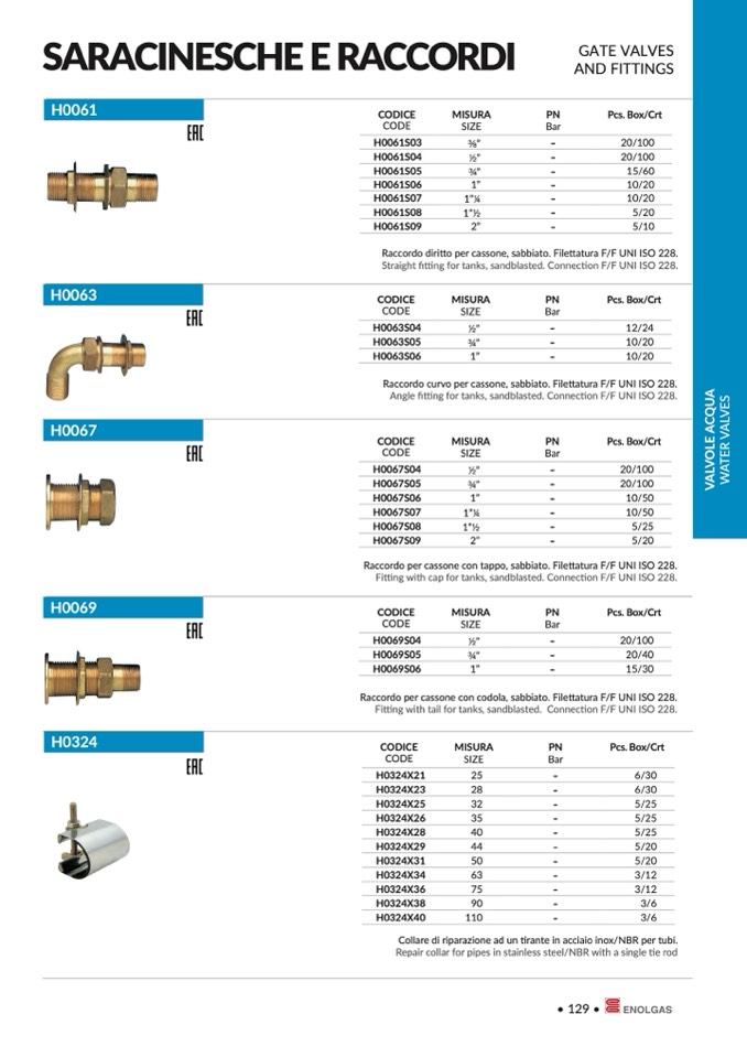 Raccordo per cassone con codola, sabbiato. Filettatura F/F UNI ISO 228.