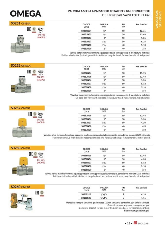 Valvola a sfera femmina/femmina a passaggio totale con cappuccio giallo piombabile, per colonne montanti GAS, nichelata.