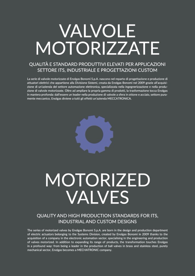 The series of motorized valves by Enolgas Bonomi S.p.A. are born in the design and production department