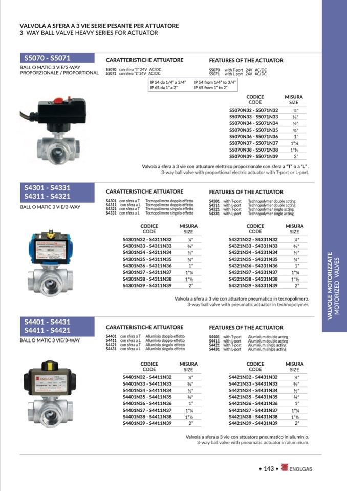 Valvola a sfera a 3 vie con attuatore elettrico proporzionale con sfera a “T” o a “L” .