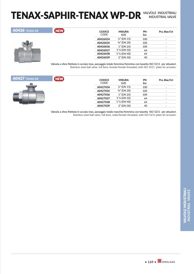 Valvola a sfera filettata in acciaio inox, passaggio totale maschio/femmina con basetta ISO 5211 per attuatori.
