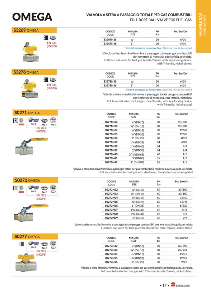 Valvola a sfera femmina/femmina a passaggio totale per gas combustibili