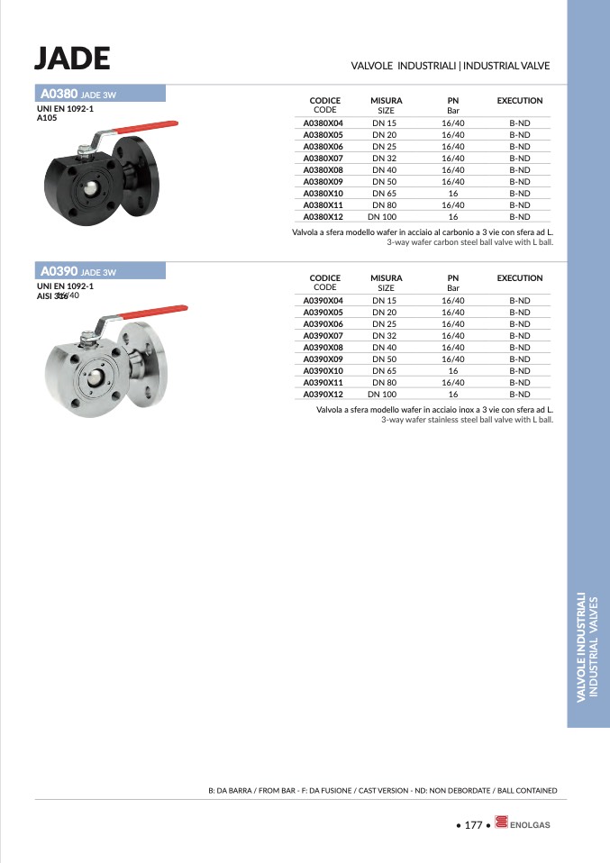 B: DA BARRA / FROM BAR - F: DA FUSIONE / CAST VERSION - ND: NON DEBORDATE / BALL CONTAINED