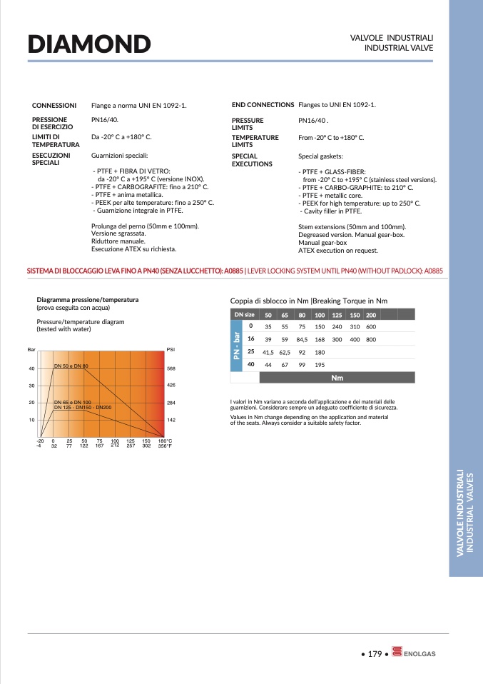 SISTEMA DI BLOCCAGGIO LEVA FINO A PN40 (SENZA LUCCHETTO): A0885 | LEVER LOCKING SYSTEM UNTIL PN40 (WITHOUT PADLOCK): A0885