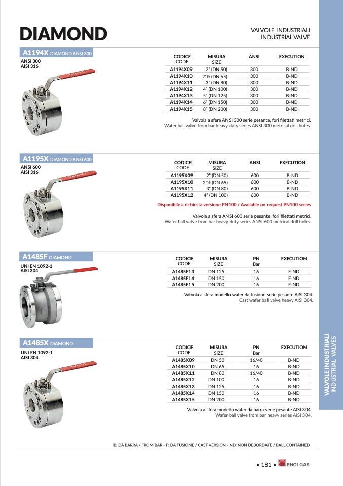 B: DA BARRA / FROM BAR - F: DA FUSIONE / CAST VERSION - ND: NON DEBORDATE / BALL CONTAINED