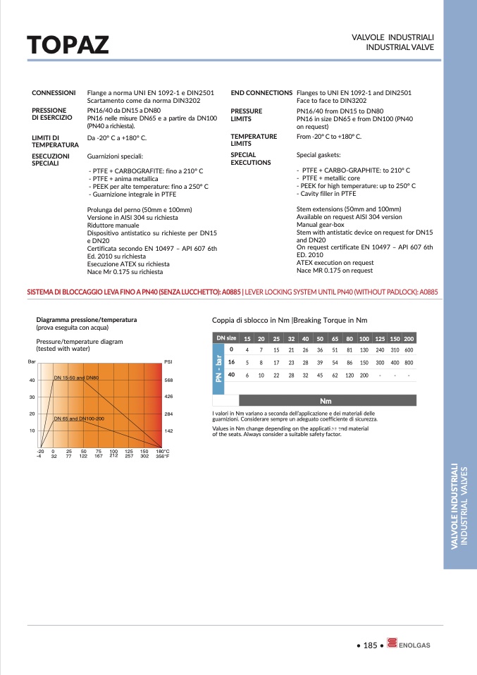SISTEMA DI BLOCCAGGIO LEVA FINO A PN40 (SENZA LUCCHETTO): A0885 | LEVER LOCKING SYSTEM UNTIL PN40 (WITHOUT PADLOCK): A0885
