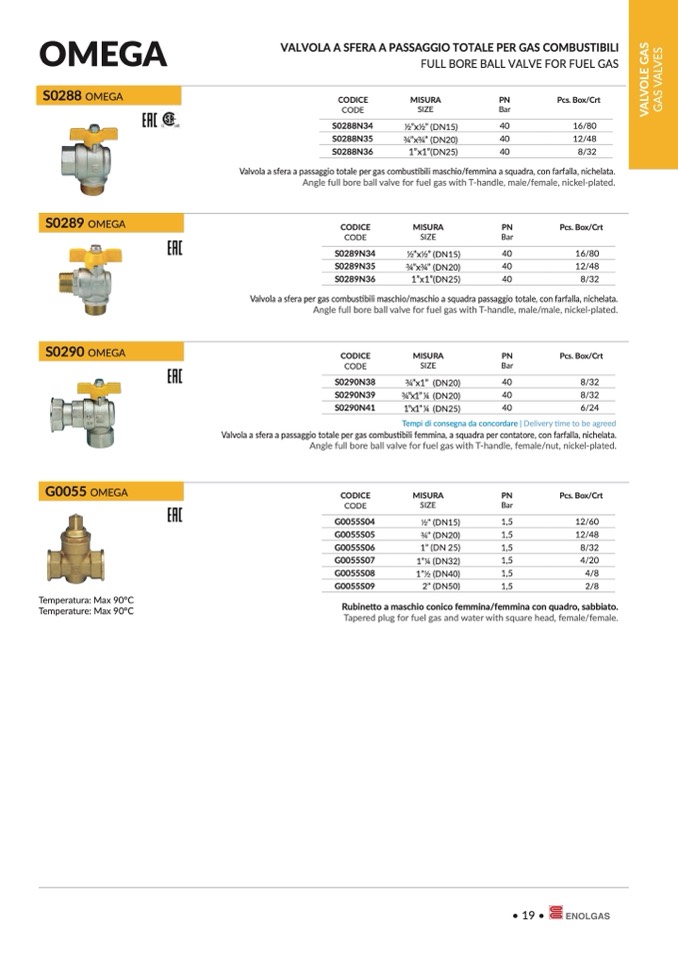 Valvola a sfera a passaggio totale per gas combustibili femmina, a squadra per contatore, con farfalla, nichelata.