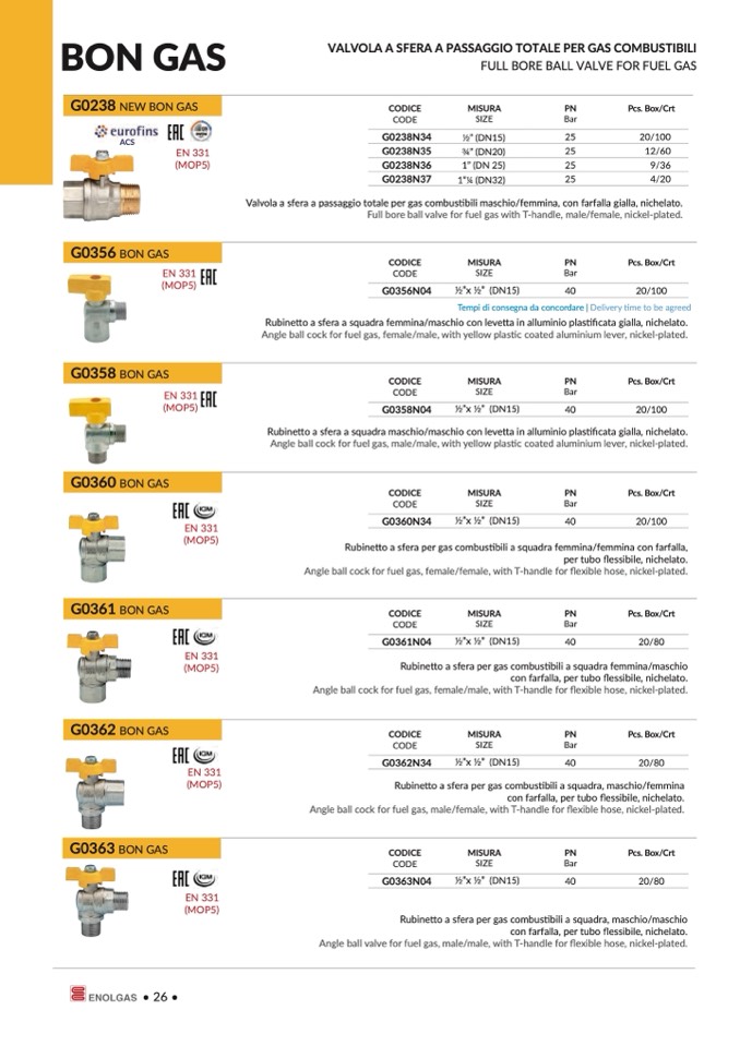 Rubinetto a sfera per gas combustibili a squadra, maschio/femmina