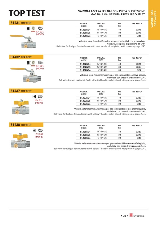 Ball valve for fuel gas female/female with yellow T-handle, nickel-plated, with pressure gauge 1/4”.