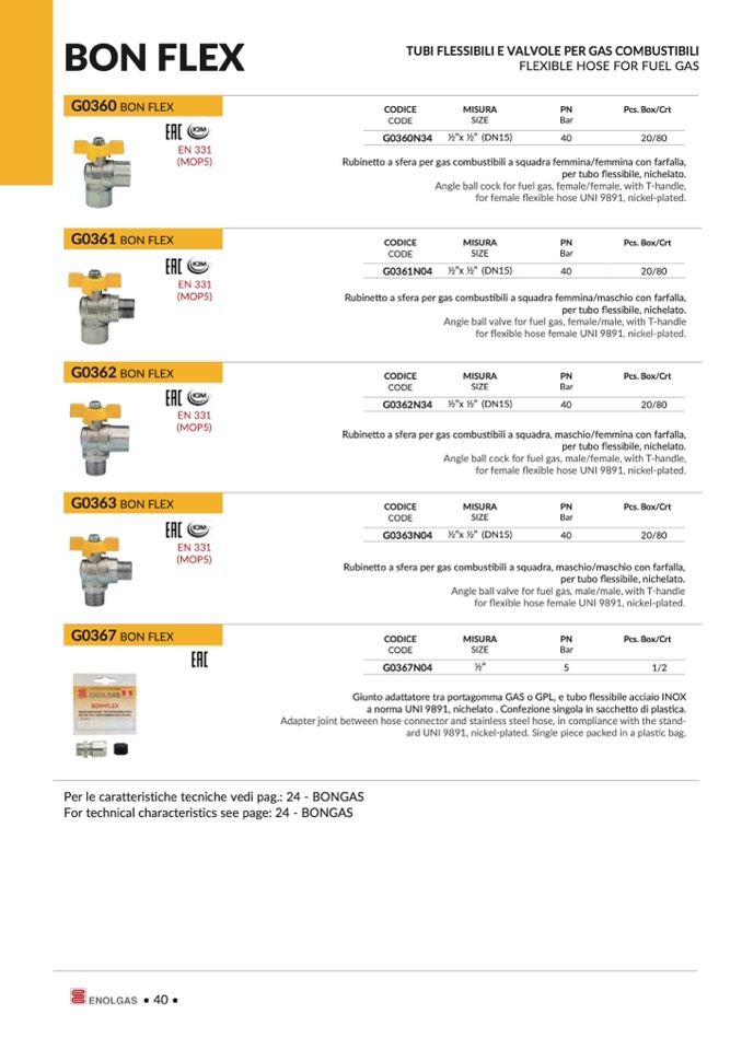 Rubinetto a sfera per gas combustibili a squadra femmina/maschio con farfalla,