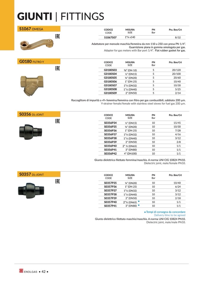 Giunto dielettrico filettato femmina/maschio. A norma UNI CIG 10824 PN10.